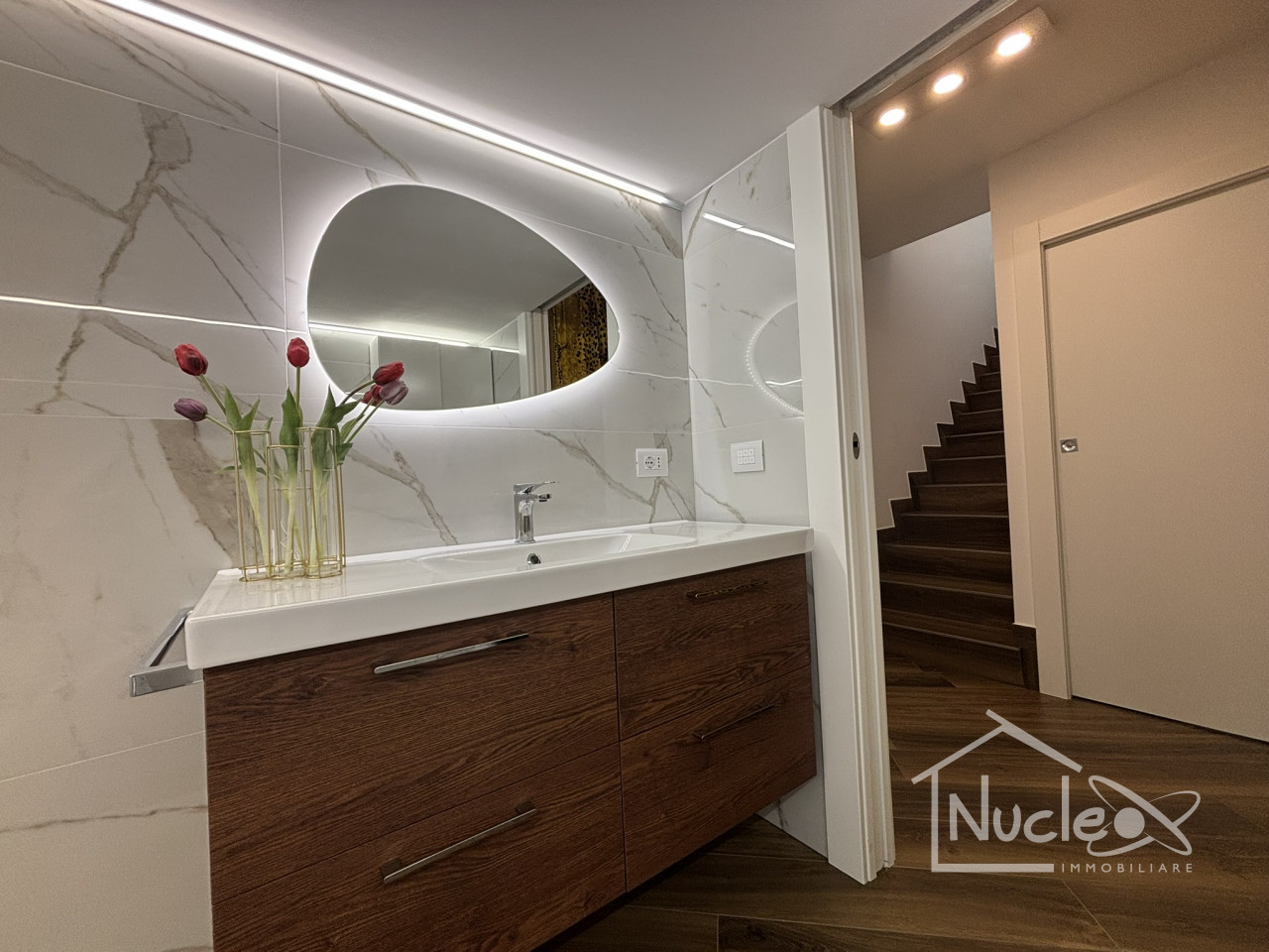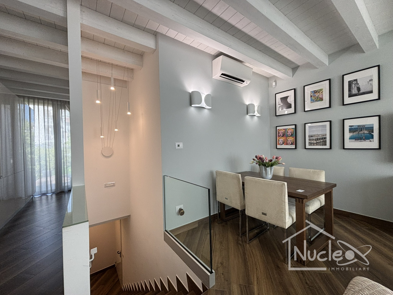 L'immobile si sviluppa su due livelli abitativi per un totale di circa 195 metri quadrati. Al livello terra l'ambiente è accogliente e funzionale, dominato da un luminoso soggiorno con cucina a vista open space. Su questo piano troviamo anche la camera da letto matrimoniale e un bagno finestrato completo di doccia.