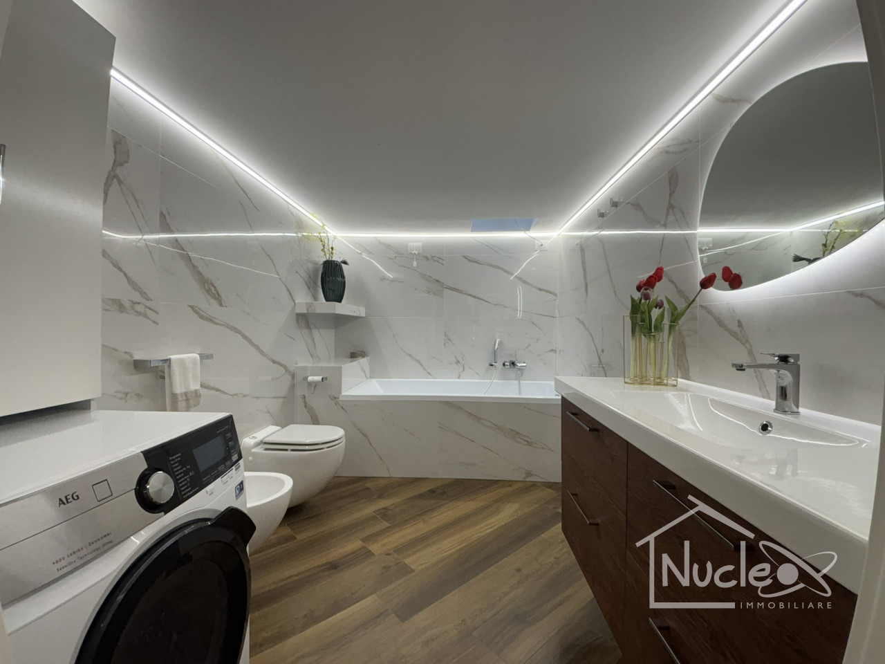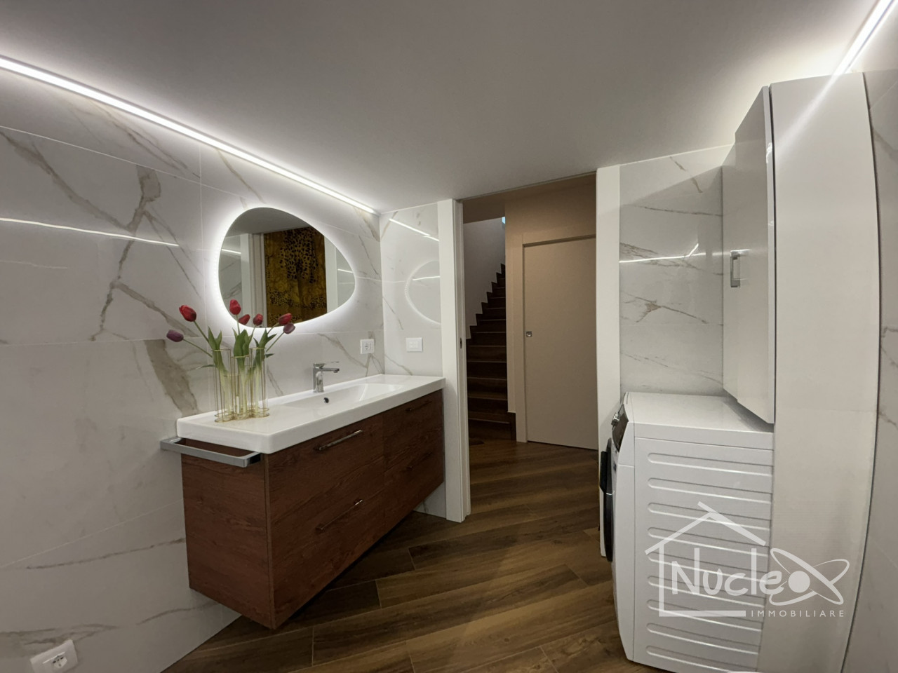 Il piano sottostrada offre una notevole versatilità con un'ulteriore stanza polifunzionale, perfetta per essere adattata a studio o sala hobby. Qui è presente anche un secondo bagno finestrato con vasca e una comodissima zona lavanderia. Entrambi i livelli godono di un accesso diretto al generoso spazio scoperto privato. Soluzione ideale per chi ha degli ospiti, con gli spazi ben divisi tra piano terra ed interrato.
